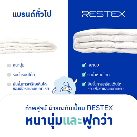 ผ้ารองกันเปื้อนสำหรับโรงแรม รีสอร์ท โรงพยาบาล และหอพัก – Restex ผู้ผลิตคุณภาพสำหรับโครงการ ผ้ารองกันเปื้อน Restex ออกแบบมาเพื่อปกป้องที่นอนจากการซึมเปื้อนของเหลว ฝุ่นละออง และสิ่งสกปรกต่างๆ ได้อย่างมีประสิทธิภาพ ช่วยให้ที่นอนของคุณสะอาดเหมือนใหม่
